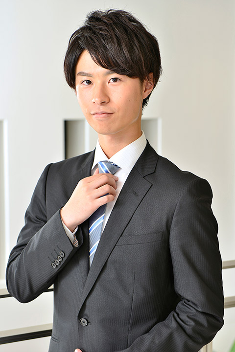 さわやかさと清潔感をだすために、流しやすいようにスタイリング。前髪が耳まわりにめだたないように2ブロックを入れ、硬い髪質やふくらみが出やすい方でもすっきりと仕上げています。