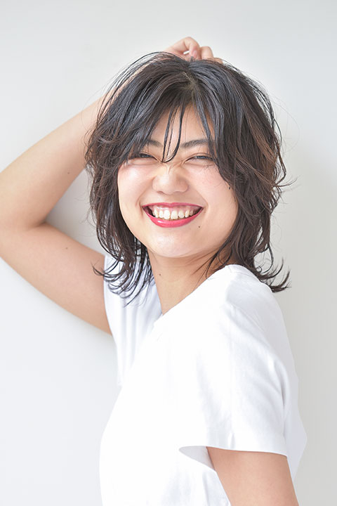 動きが出るように、上の方を強めに巻いて軽く見せました。スタイリングポイント